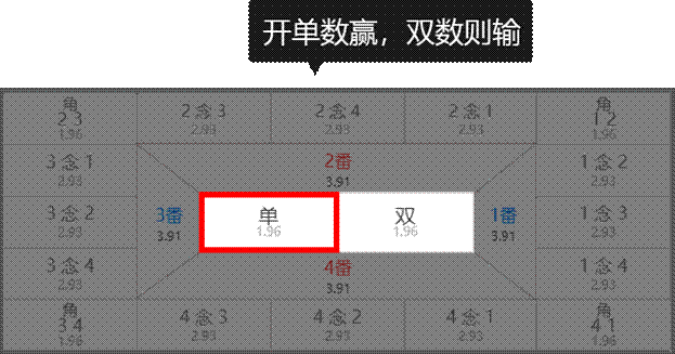 单/双玩法注解: 余数 1,3 为【单】,2,4 为【双】。